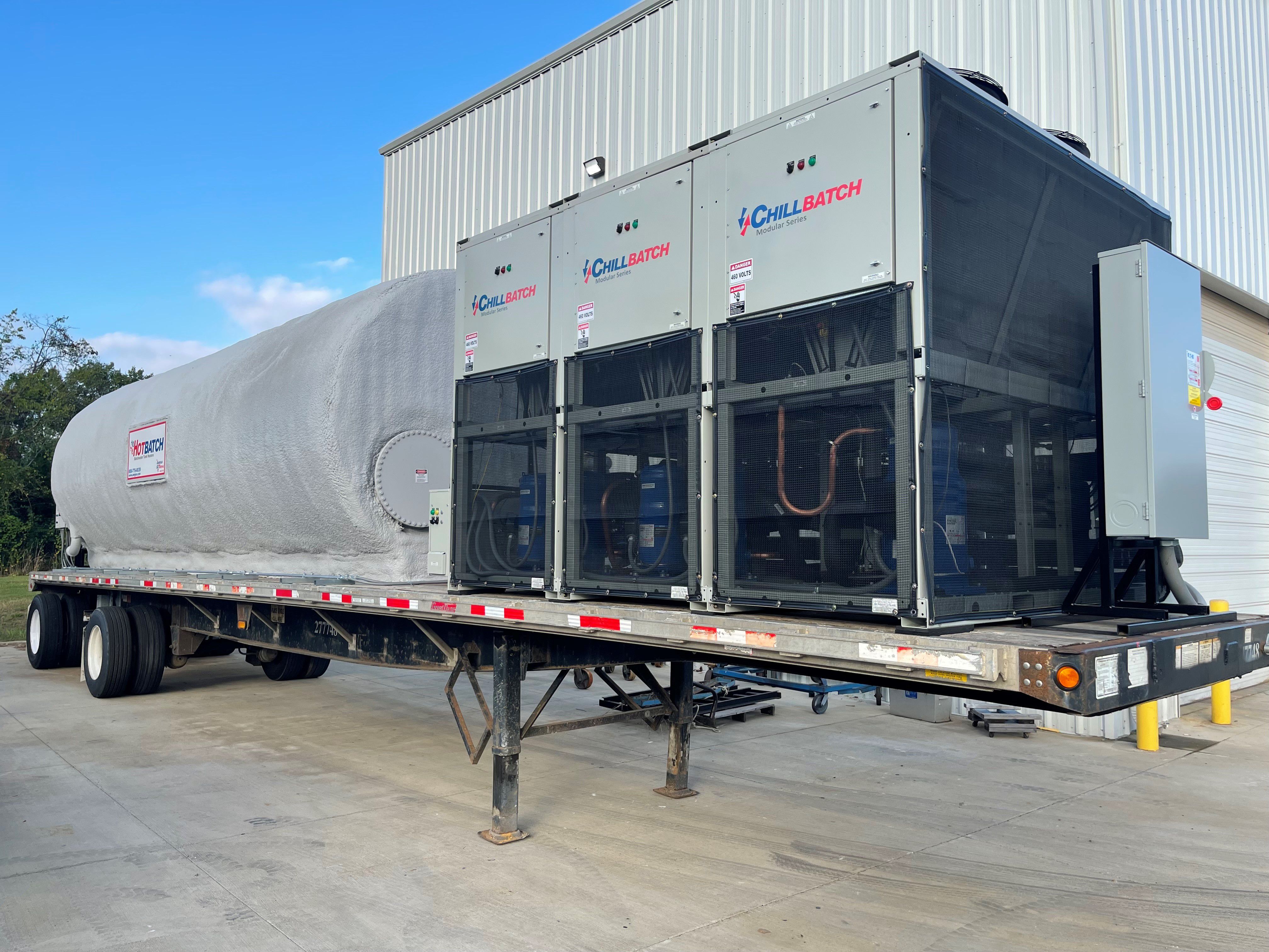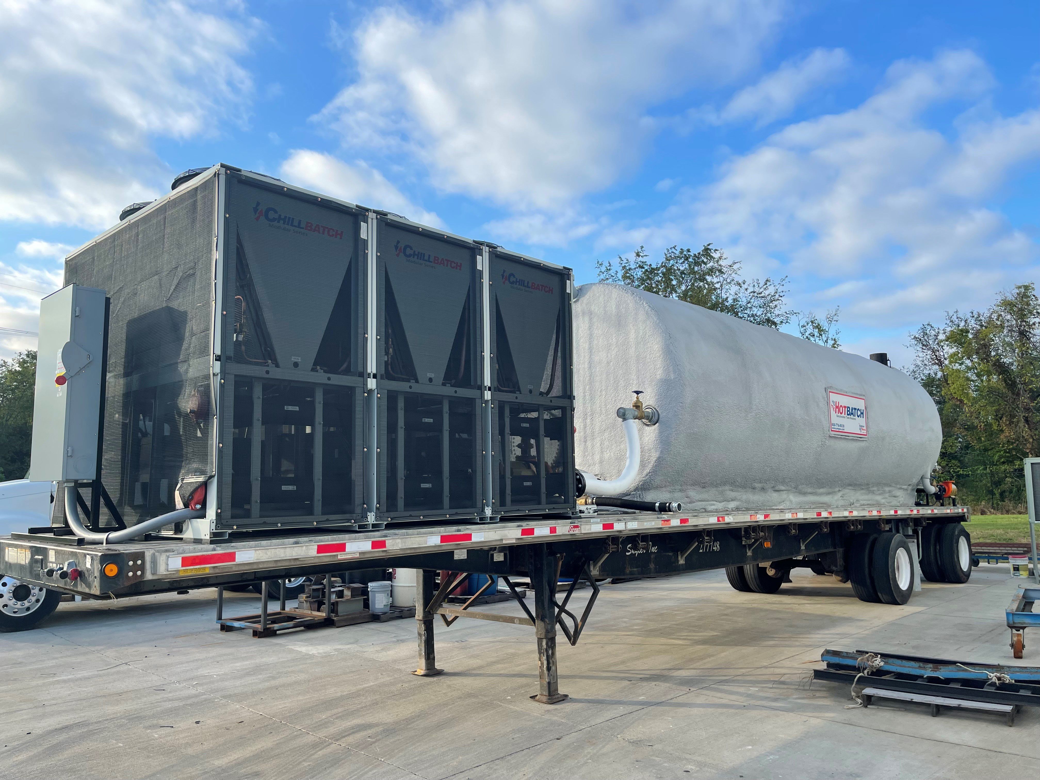Skid-mounted Chillbatch, Thermabatch, or E-Line with insulated storage tank